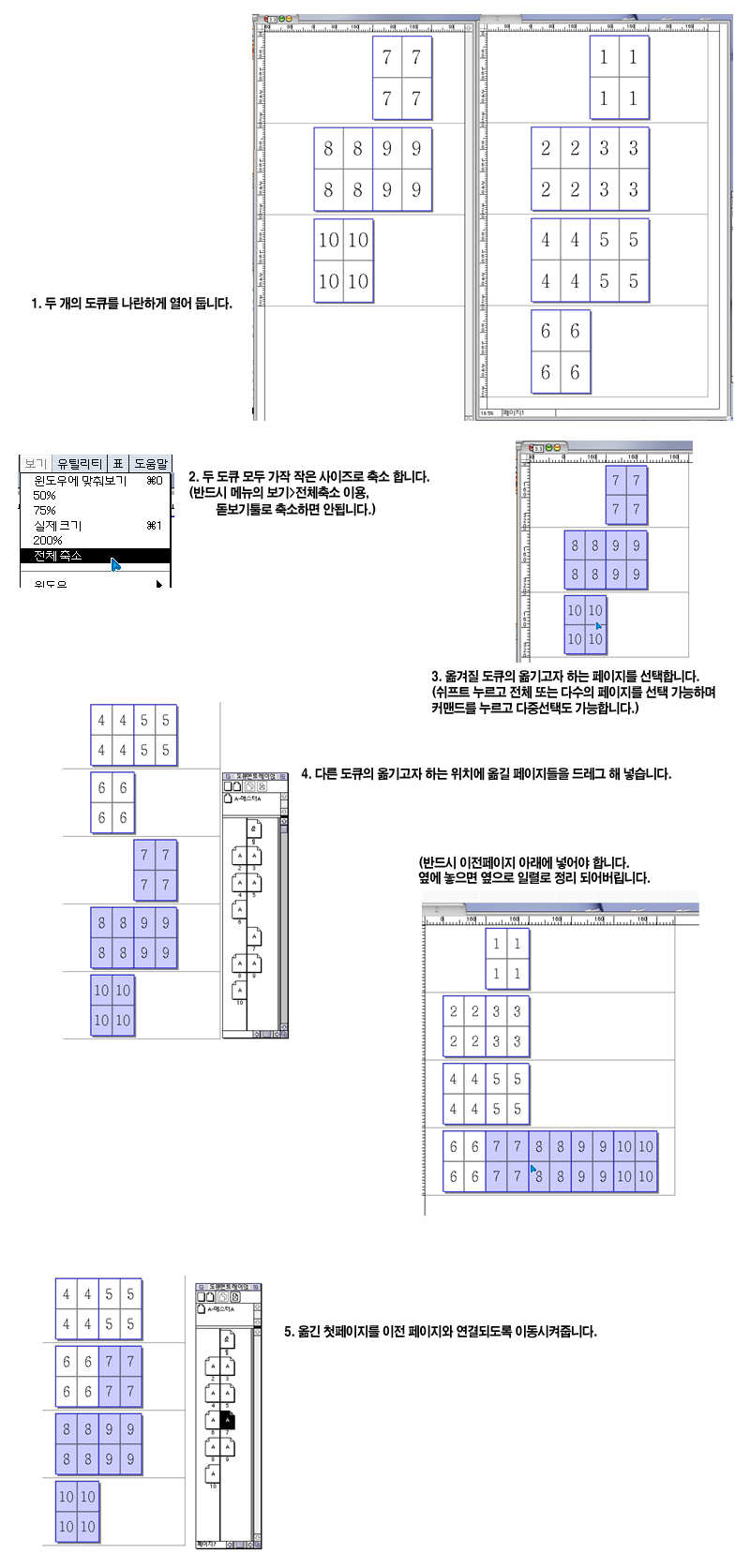 컥작업 하다보면 페이지 합치기나 삽입을 해야 할 경우가 종종 있습니다.