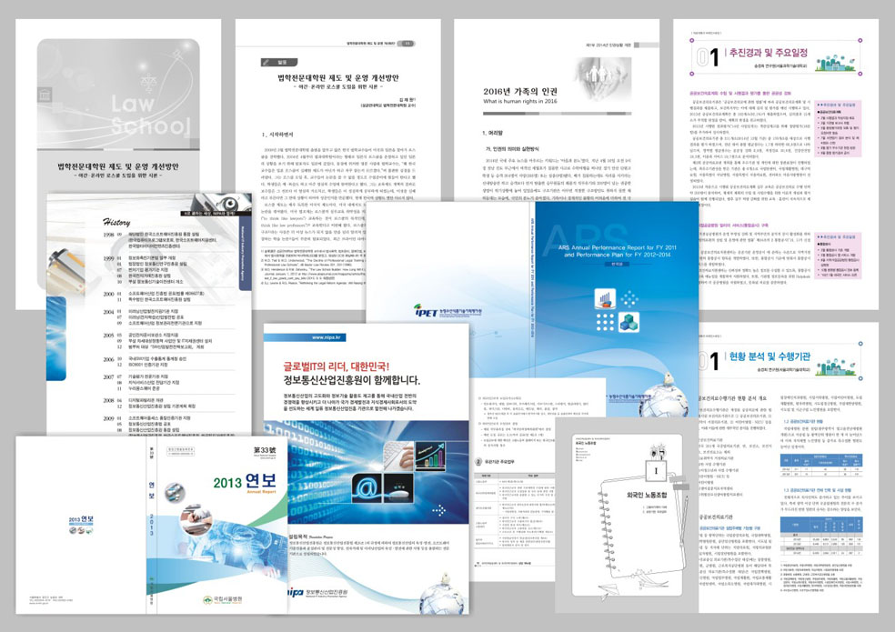 ->연구보고서, 경영보고서, 연수교재, 교육계획서, 학회지, 대학교재, 문제집, 수험서, 단행본 등